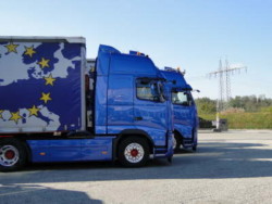 Unser Fuhrpark besteht zur Zeit aus 11 eigenen Sattelzügen